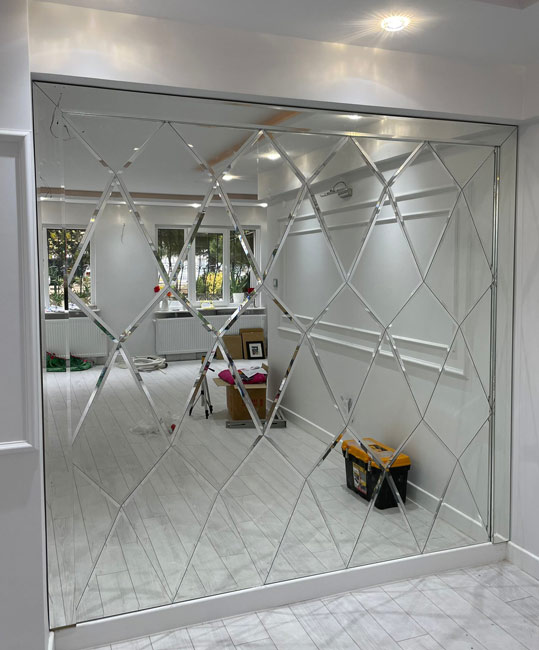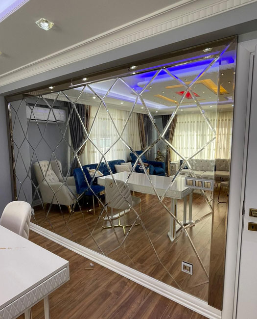 Kelkit Cam, dekoratif baklava desenli ayna ( baklava ayna) imalatı ve uygulamaları ile siz değerli müşterilerine hizmet vermektedir.